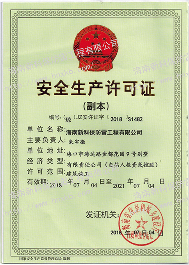 海南新科保防雷工程有限公司是一家集防雷技術(shù)研究、防雷檢測、防雷工程設計施工、安防監(jiān)控工程設計施工、建筑智能化施工、建筑水電施工于一體的高科技公司。在相關(guān)主管部門監(jiān)管下,致力于為客戶提供專業(yè)的安全防護、建筑智能化、水電技術(shù)等優(yōu)質(zhì)產(chǎn)品和工程服務。